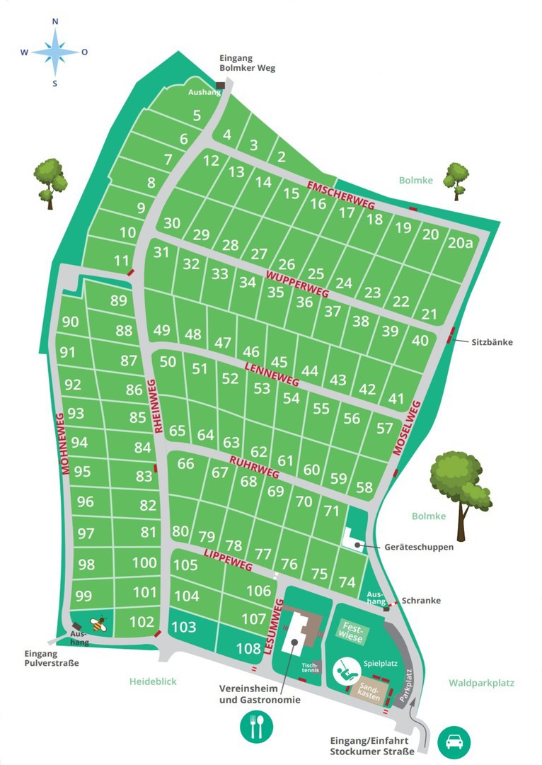 Herzlich Willkommen in unserem Kleingartenverein im Dortmunder Süden mit 106 Gärten in der ruhigen Waldgegend der Bolmke.